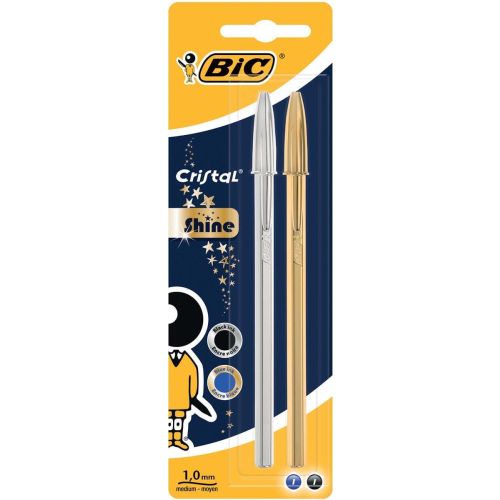 Balpen BIC Cristal Shine blister met 2 stuks goud en zilver PACK/2