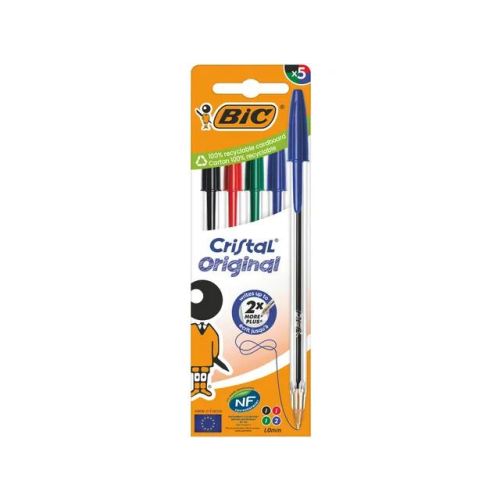 Balpen Bic Cristal medium assorti blister à 5 stuks PACK/4