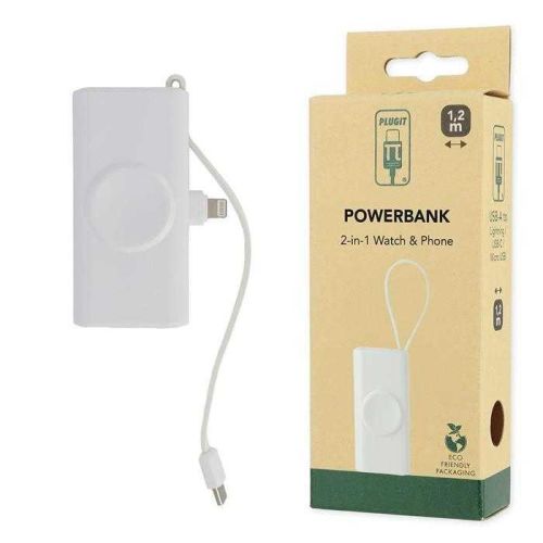 PLUGIT POWERBANK 2 IN 1 IWATCH & PHONE 5K MAH WHITE COLOR
